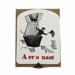 Single letterpressed card. Classic black and red ink. Diecut on 4 ply museum board. Custom ap paperbag envelope. 4.25 x 5.5 inches. Printed and assembled in the San Francisco. Elegantly paired with recycled brown bag envelopes. Hand made in the USA!