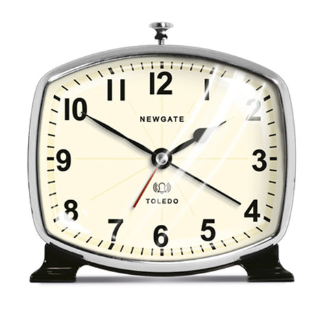 THIS GORGEOUS RETRO INSPIRED ALARM CLOCK HAS A SWEEP MOVEMENT. YOU CAN ALSO GRAB YOURSELF A FEW MORE MINUTES WITH THE SNOOZE BUTTON. AHH, BLISS!