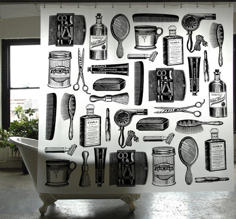 This design features a black Barbershop-inspired print. This high quality and durable shower curtain shower curtain is Made from eco-friendly 100% PEVA. Imported.